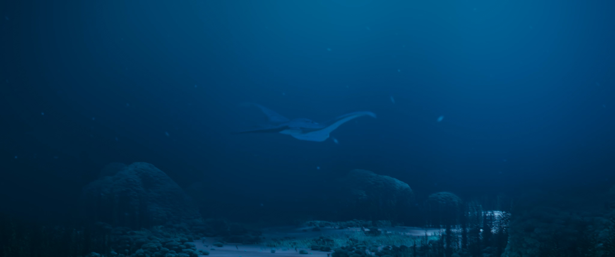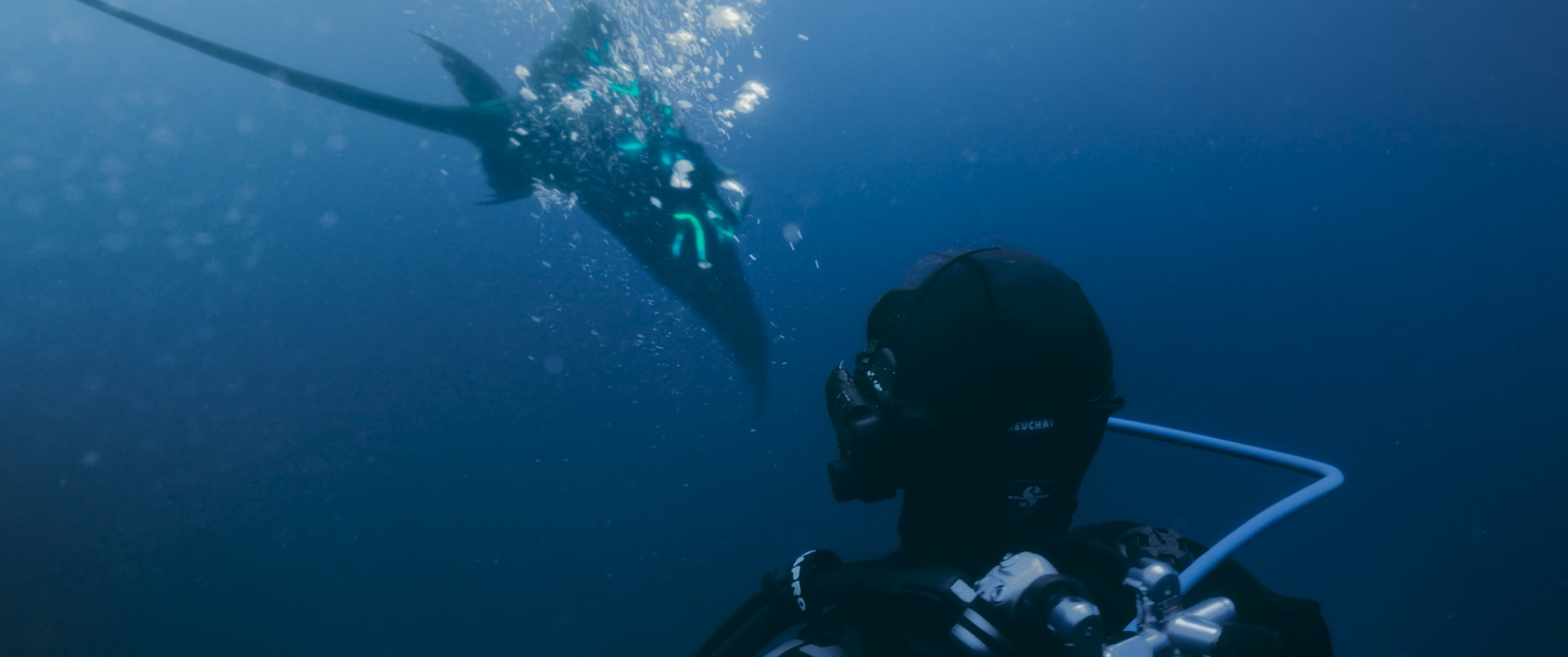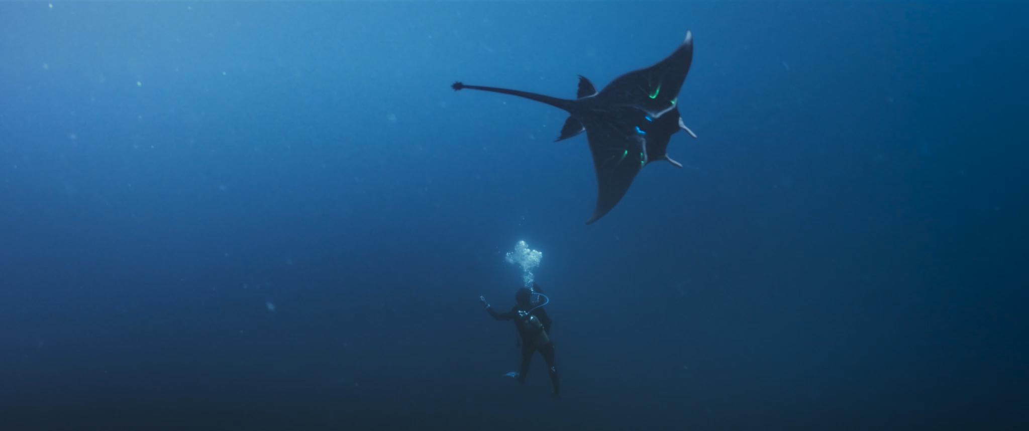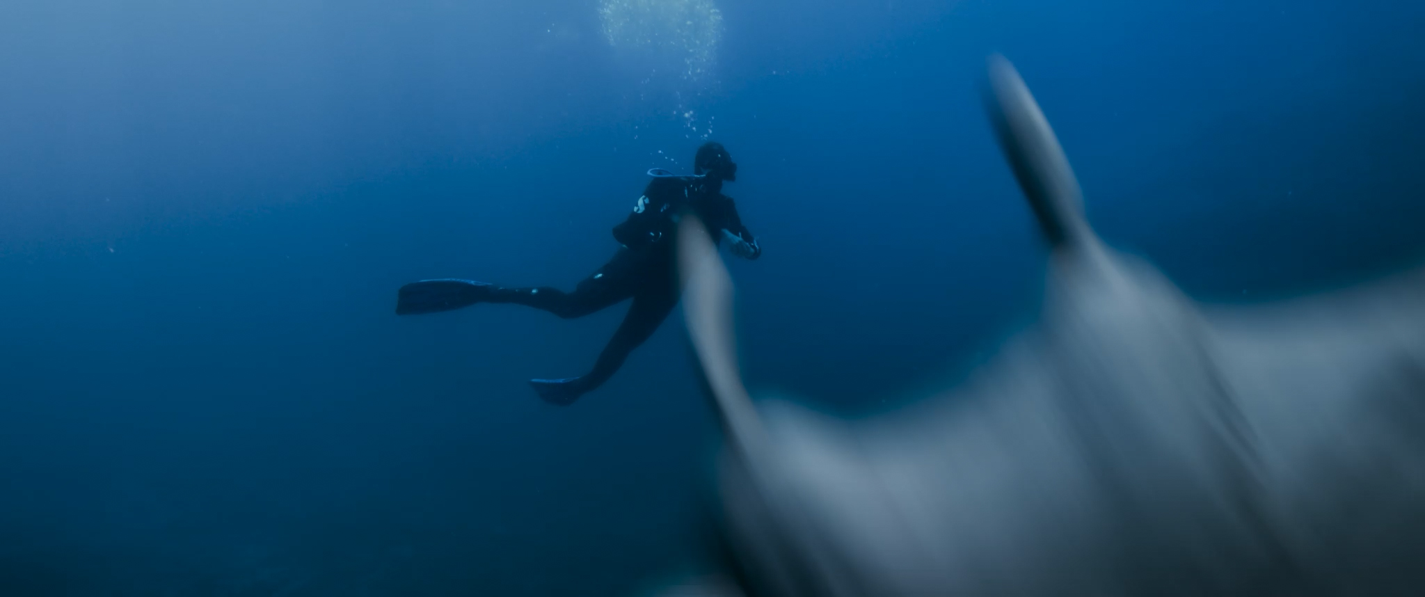 English ► As a diver explores the ocean depths, a strange manta ray approaches her. The intriguing creature leads her to a mysterious destination.