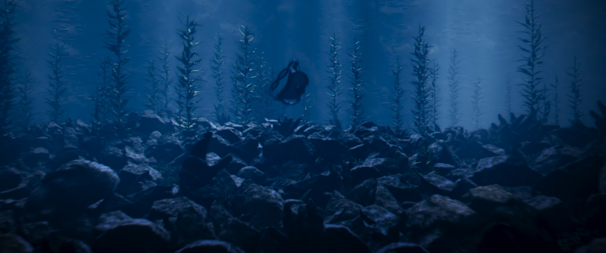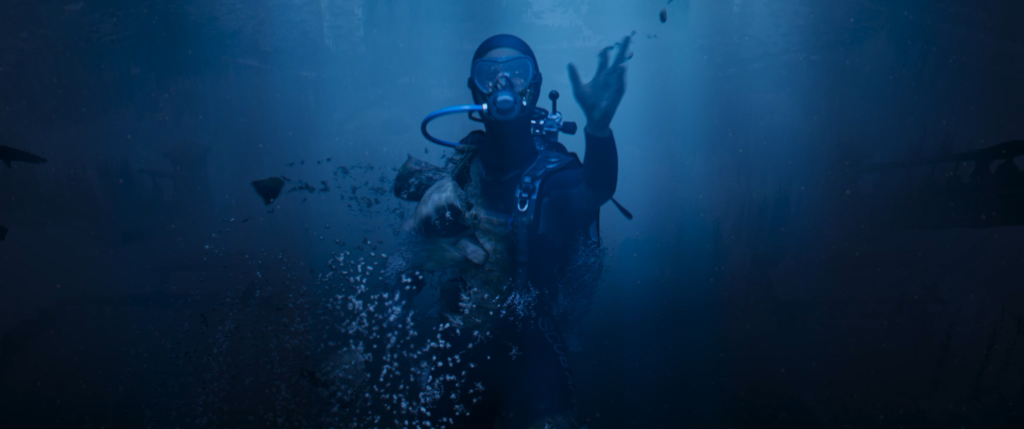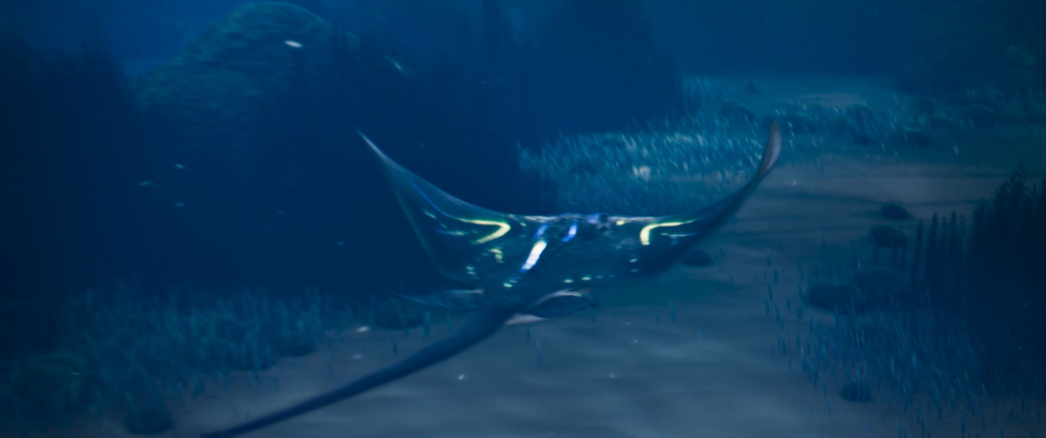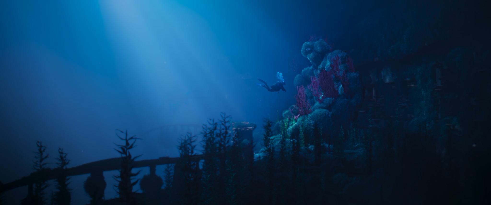 English ► As a diver explores the ocean depths, a strange manta ray approaches her. The intriguing creature leads her to a mysterious destination.