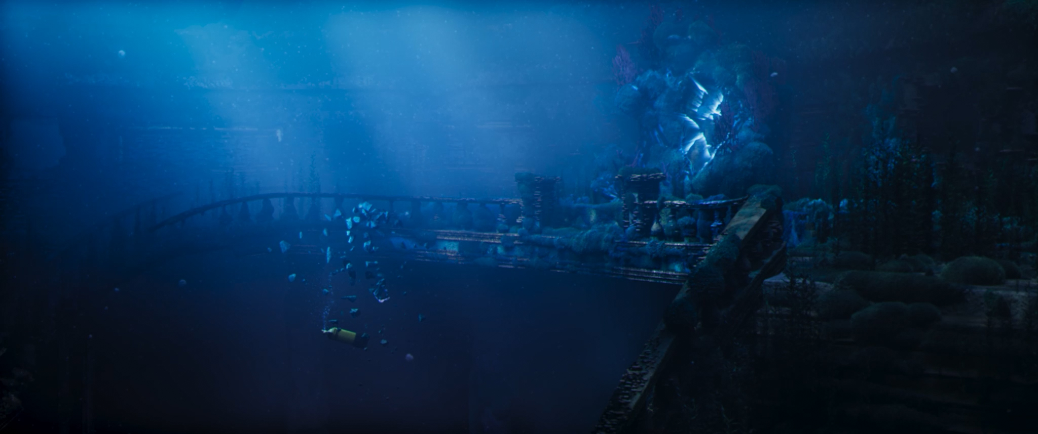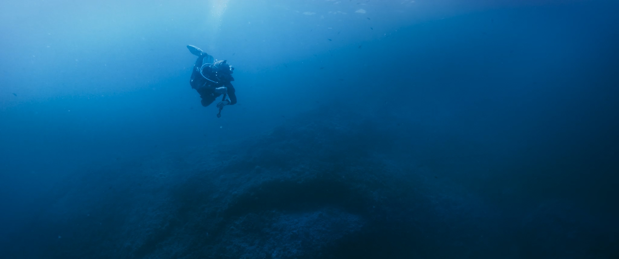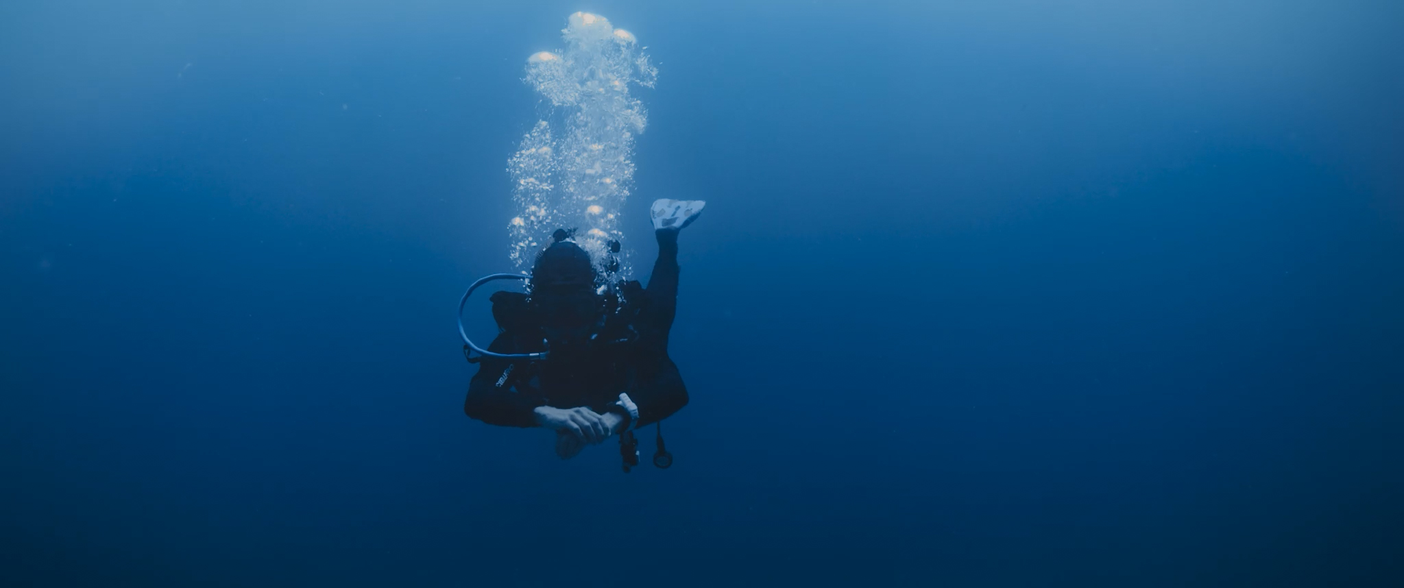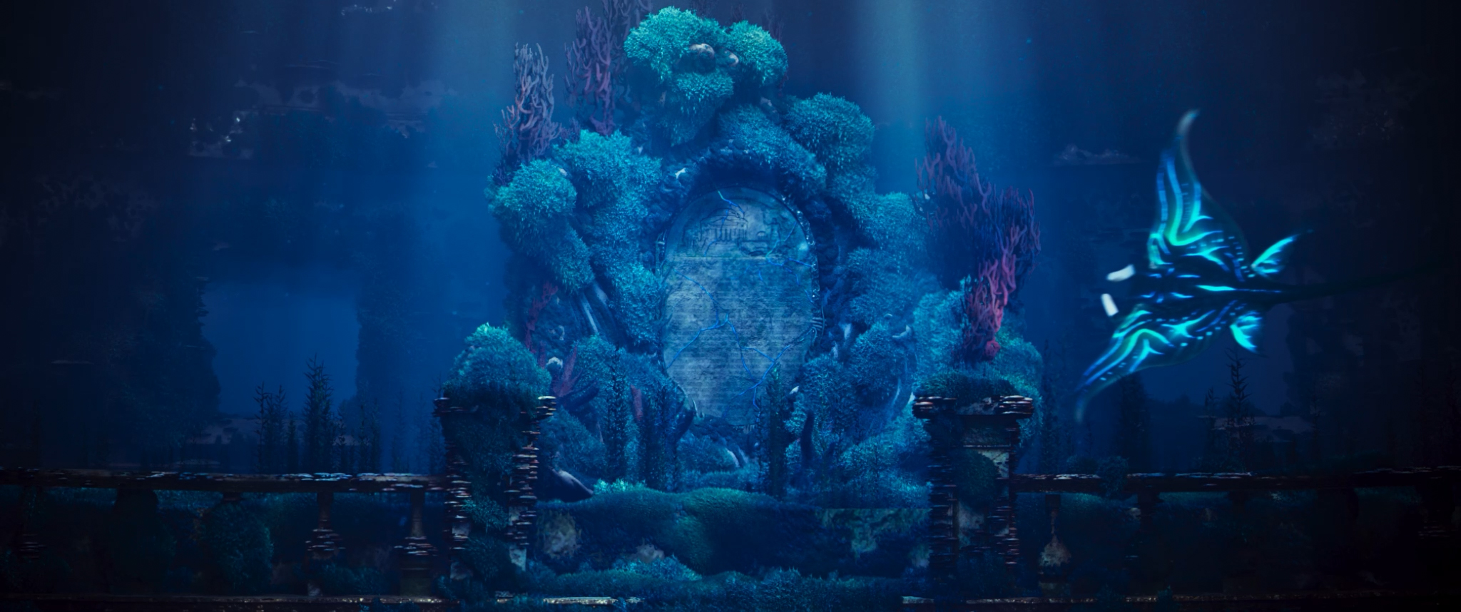 English ► As a diver explores the ocean depths, a strange manta ray approaches her. The intriguing creature leads her to a mysterious destination.