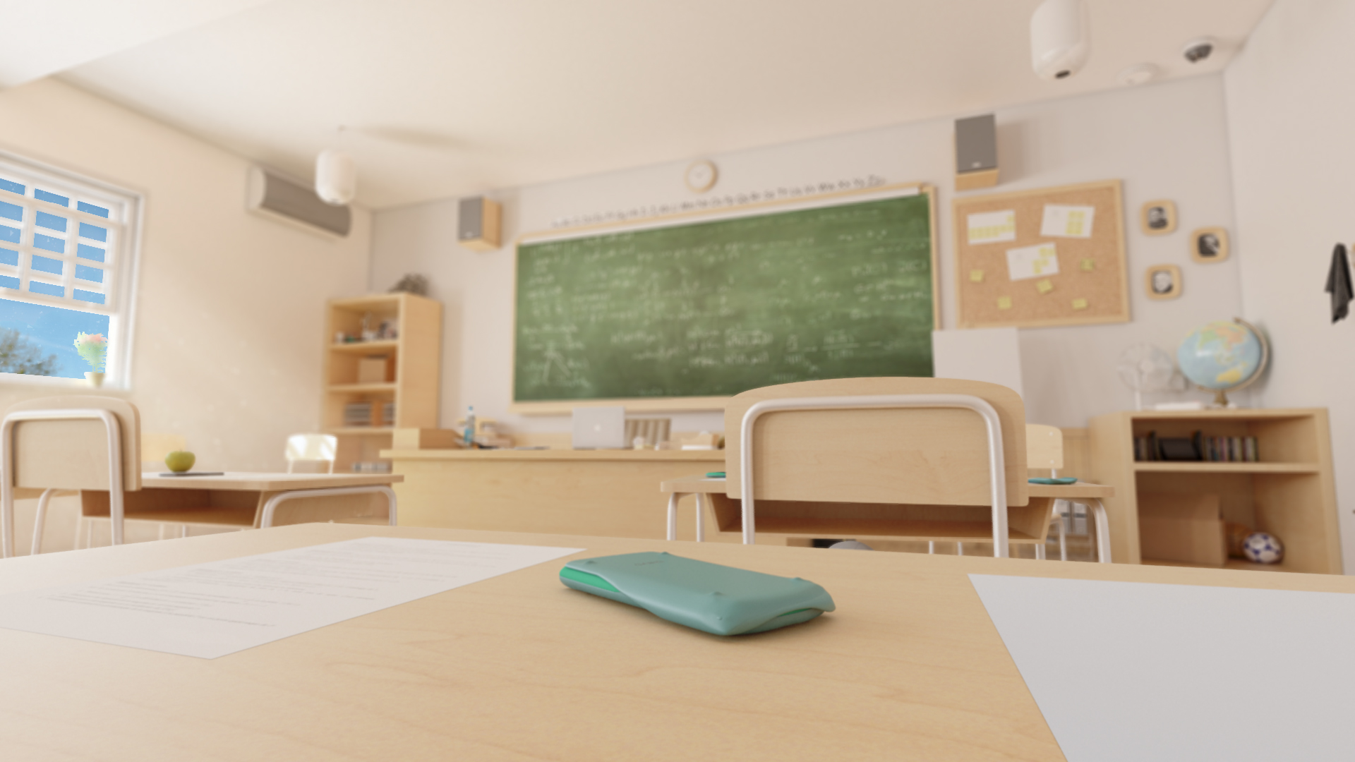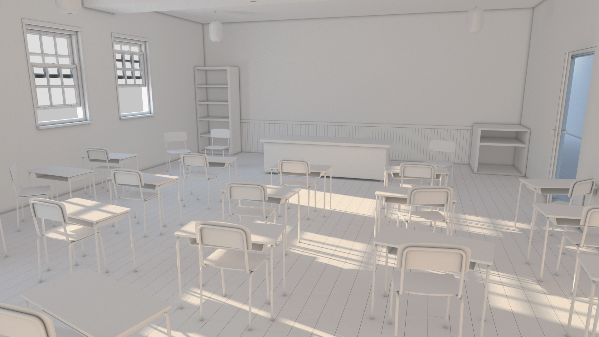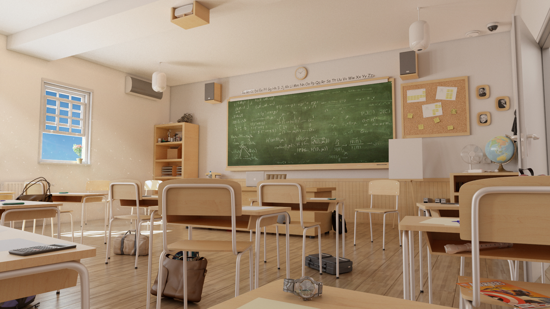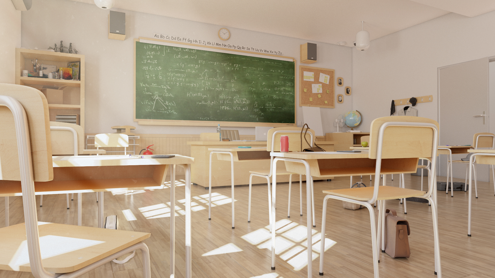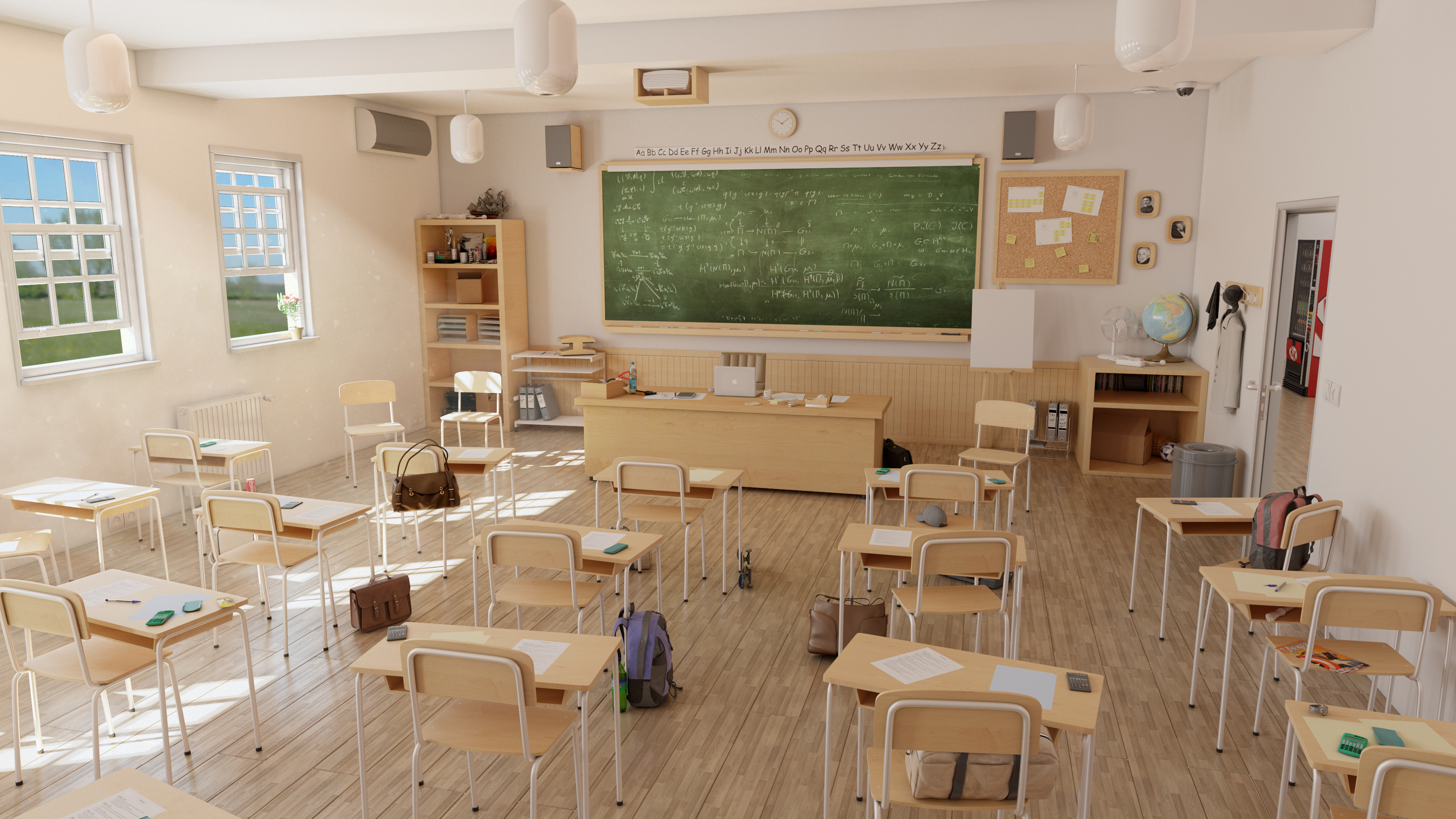 I started by creating the furniture in order to have a base in which I then added all the elements that a classroom can have such as pens, bags, notebooks, etc.. Apart from the furniture, I didn't model everything. However, I retextured almost everything… I finally lit up the classroom and rendered the final scene.