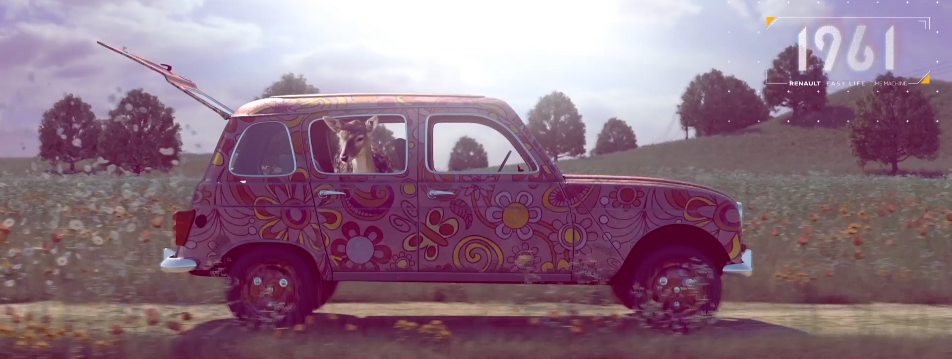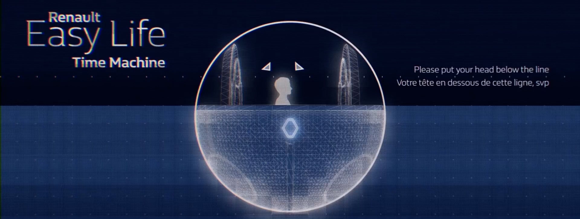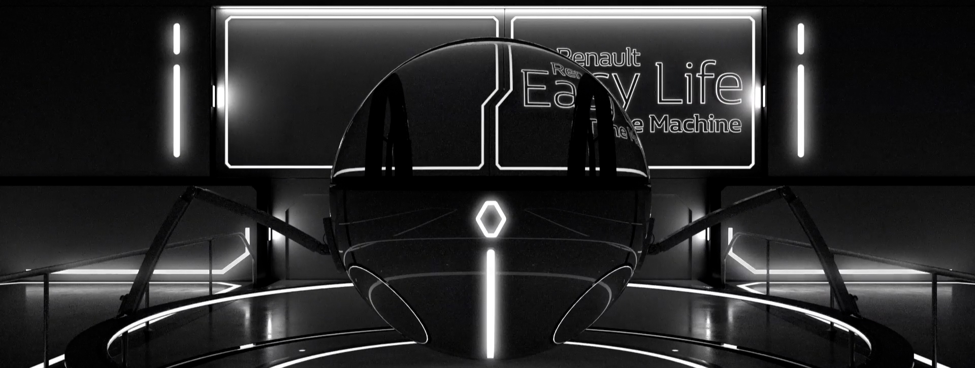 Cette vidéo était destinée à être projetée au sein d'un dispositif spécial à l'atelier Renault à Paris. Dans ce dispositif, l'utilisateur se voit installé à bord du véhicule et voyage dans le temps pour découvrir les différentes innovations Renault au fil des décennies.