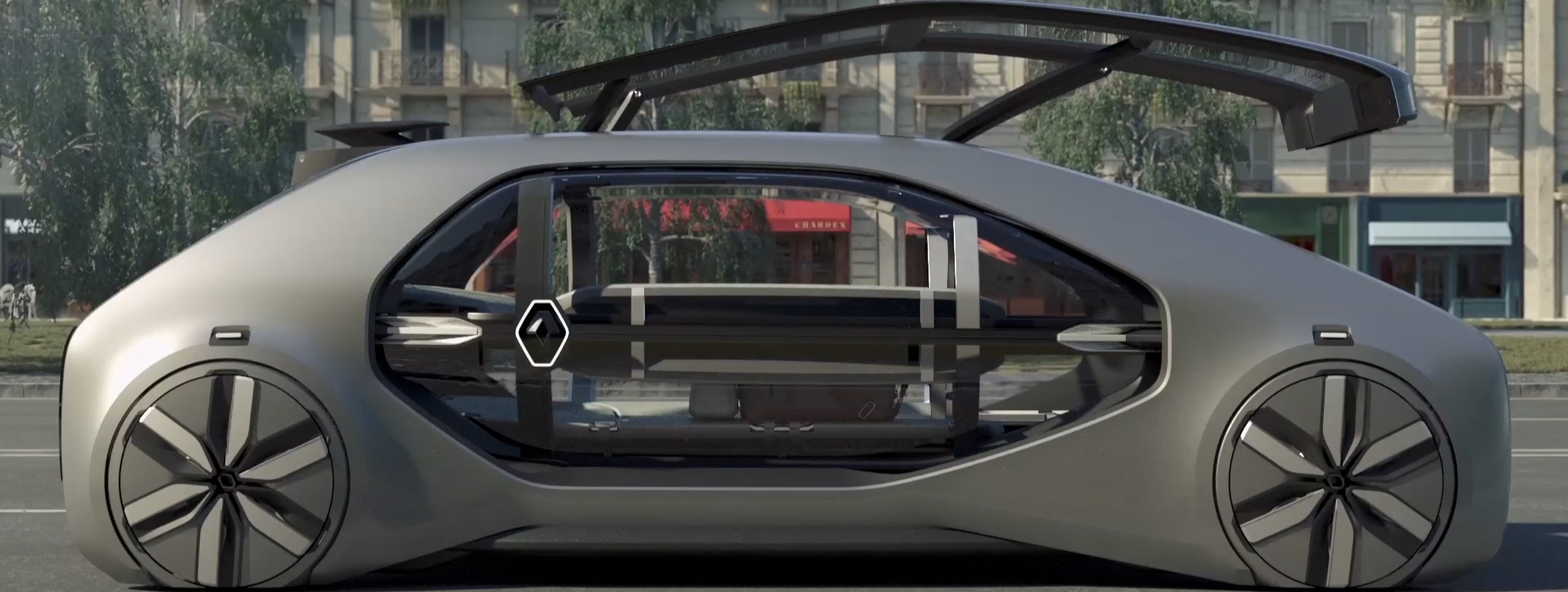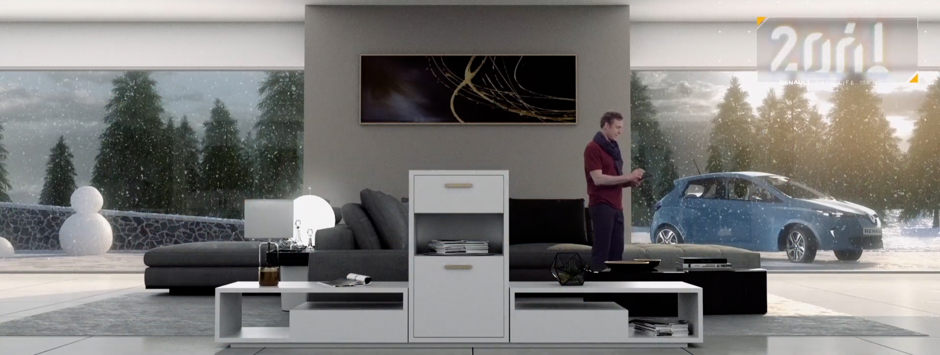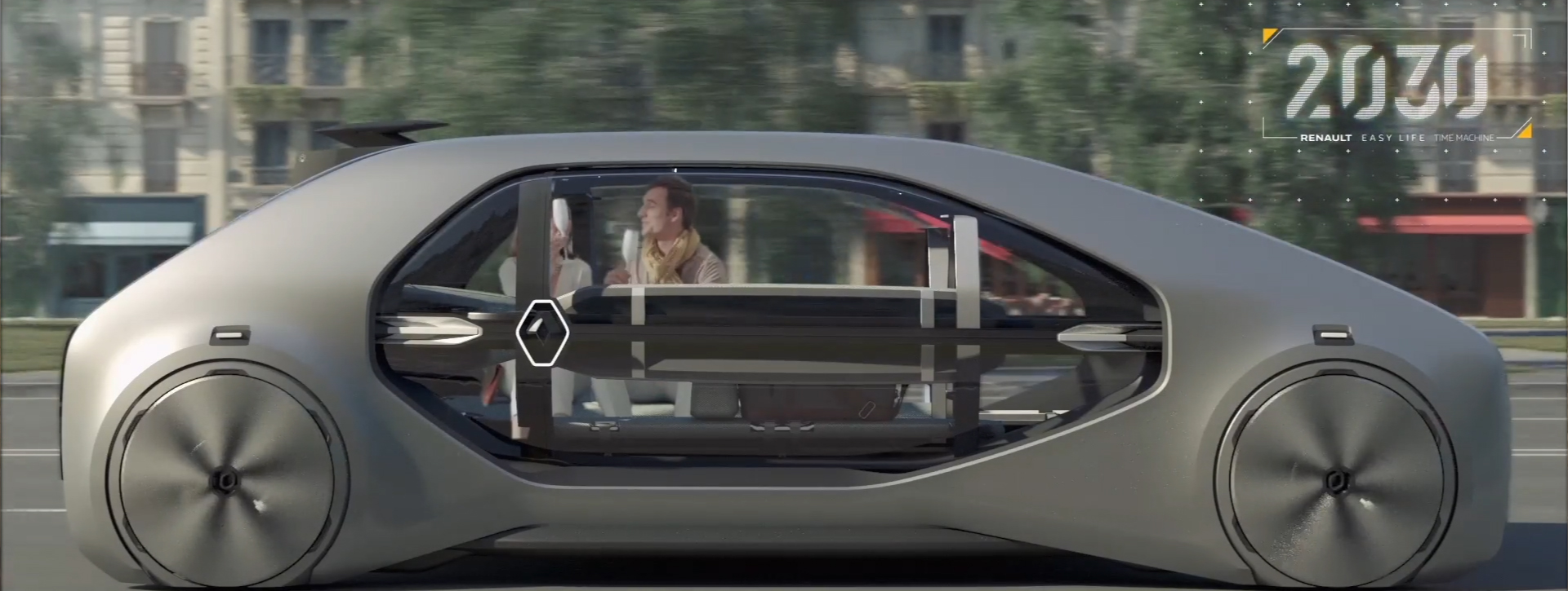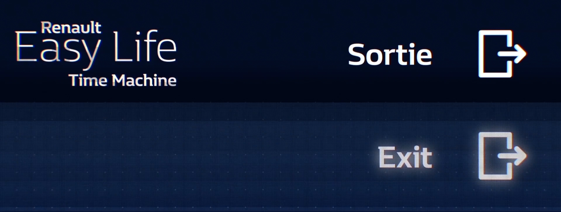 Cette vidéo était destinée à être projetée au sein d'un dispositif spécial à l'atelier Renault à Paris. Dans ce dispositif, l'utilisateur se voit installé à bord du véhicule et voyage dans le temps pour découvrir les différentes innovations Renault au fil des décennies.